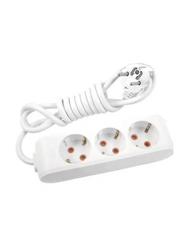 Удлинитель имеет гибкий кабель длинной 2 метра и 3 розетки для подключения (для вилок евростандарта).