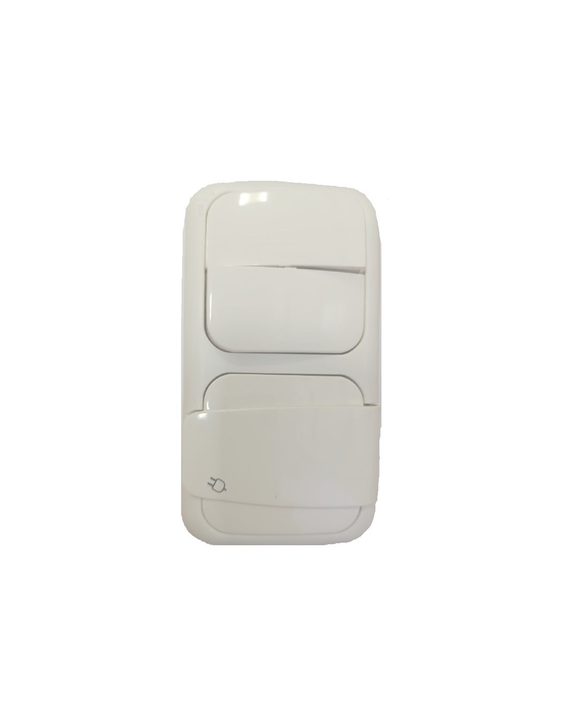 Блок вертикальный выключатель двухклавишный розетка с заземлением крем IP44 Viko PALMIYE 90555882