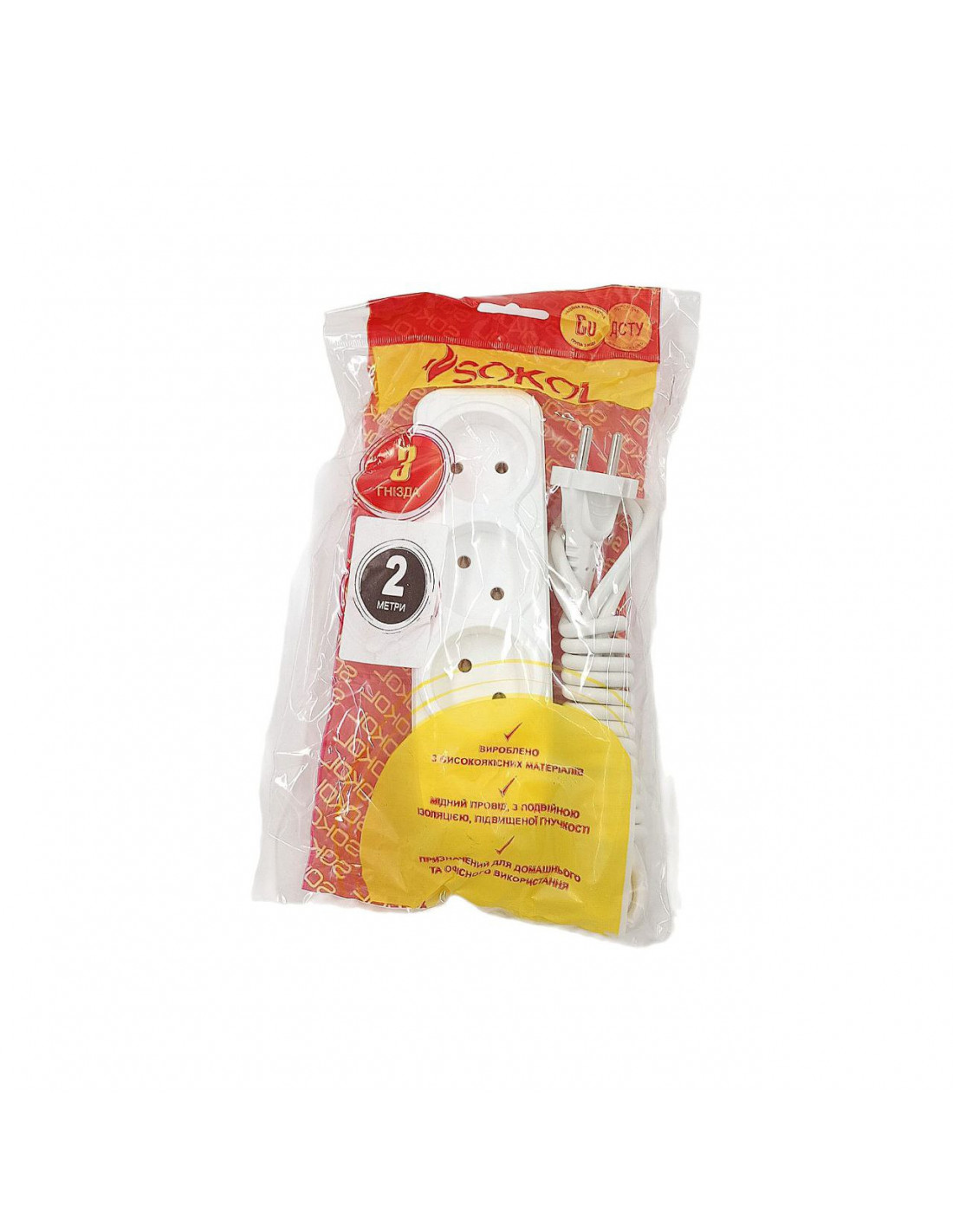 Подовжувач 3 гн б/з 2 м Sokol