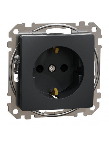 SDD114022 Розетка з заземленням та зі шторками Чорний Sedna Design